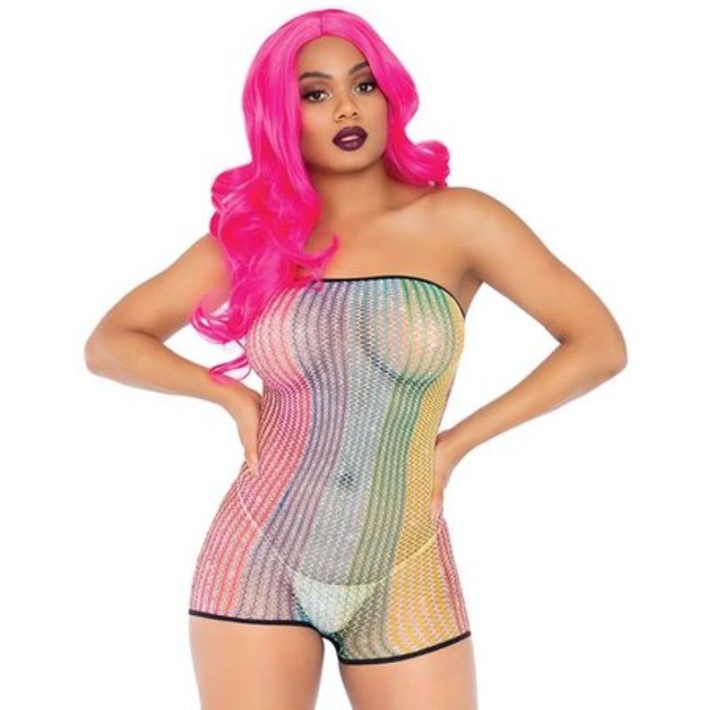 8 in stockLurex Rainbow Net Strapless Romper - OS