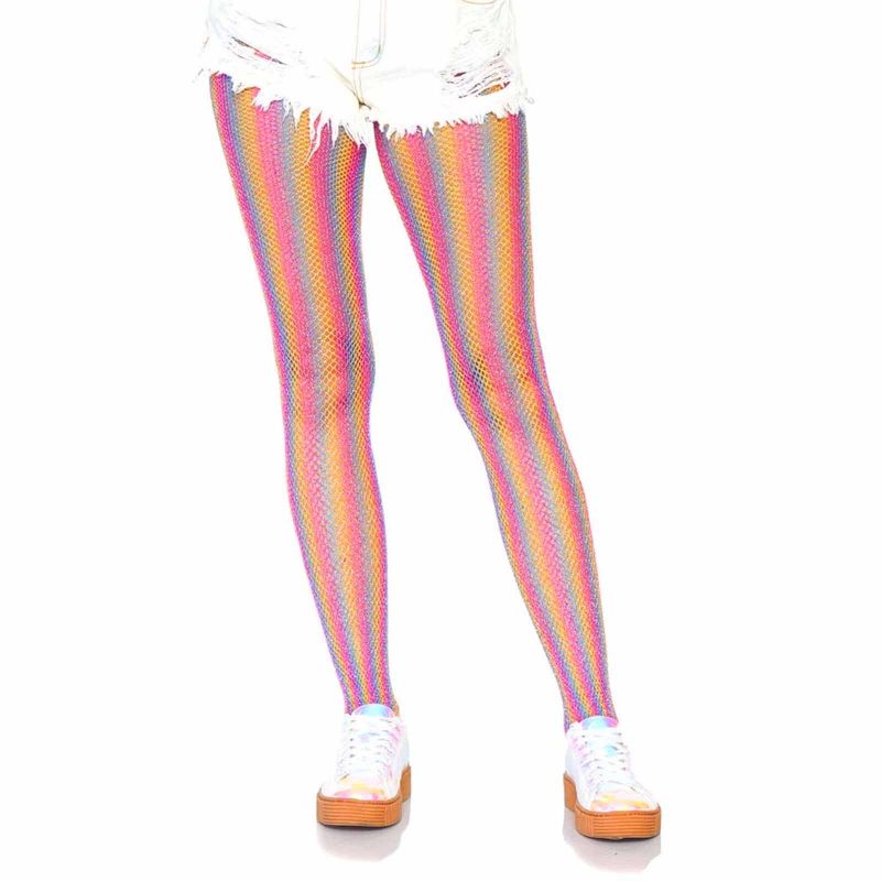 Only 4 left!Coloured Lurex Shimmer Rainbow Striped Fishnet Tights - OS
