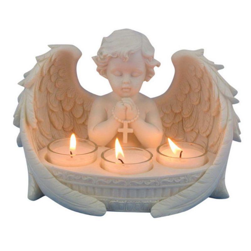 Only 1 left!Praying Cherub with 3 Tealight Candle Holder - 21cm