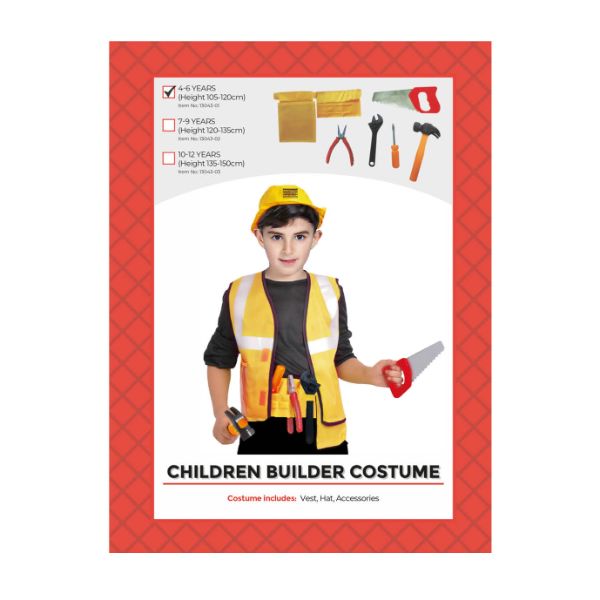 Only 3 left!Kids Builder Costume - S (4 - 6 years)