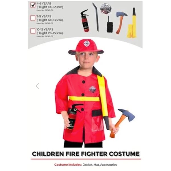 Only 3 left!Kids Fire Fighter Costume - L (4-6 years)