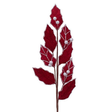 12 in stockRed & Glitter Holly Leaf Stem - 75cm