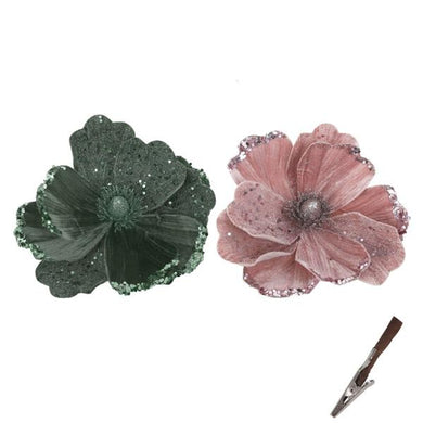 8 in stockSage Or Dusty Pink Velour Poinsettia With Clip - 30cm