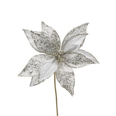 12 in stockPlatinum Poinsettia With Glitter Finish Stem - 31cm x 50cm