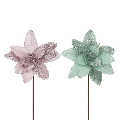23 in stockCoral Or Mint Glitter Poinsettia With Stem - 32cm x 50cm