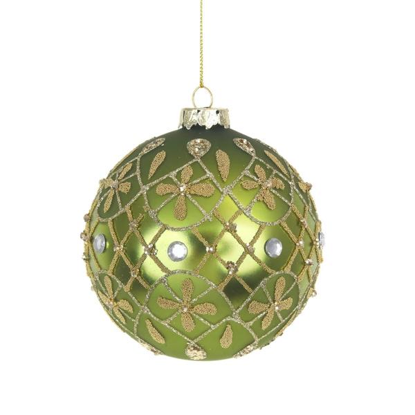 Only 4 left!Sage Green With Glitter Details Glass Bauble - 10cm