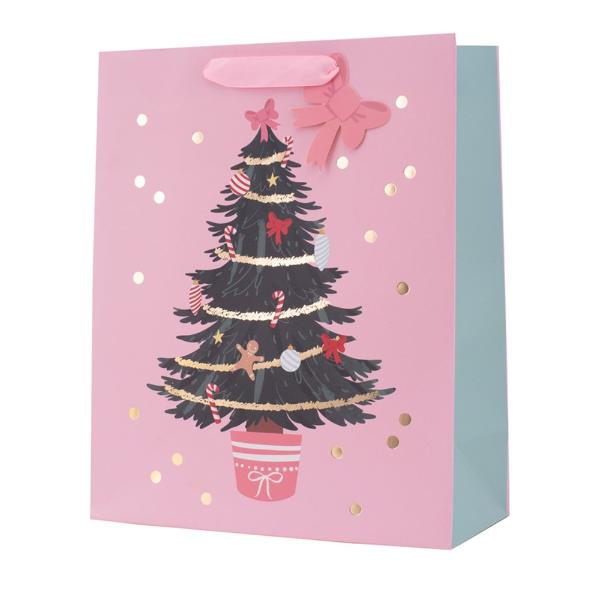 Only 3 left!Large Pink Christmas Tree Gift Bag - 26cm x 32cm x 12cm