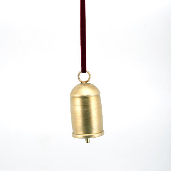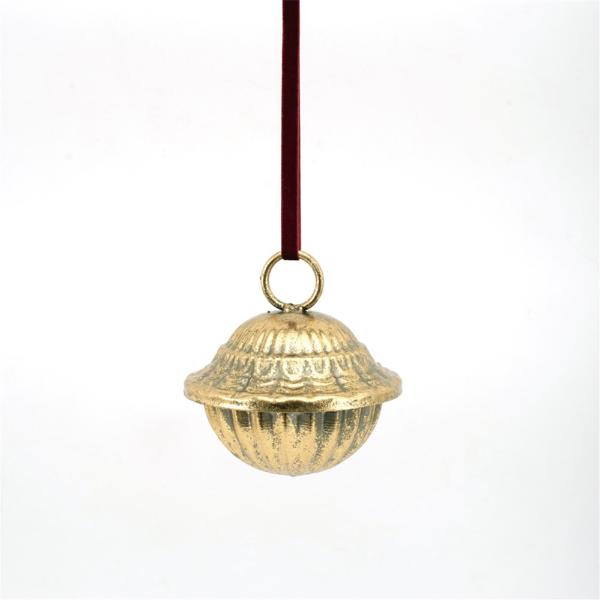 Gold Metal Bell With Burgundy Velvet Ribbon - 6cm x 12.5cm