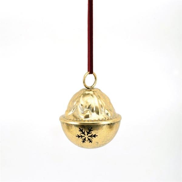 Gold Metal Bell With Burgundy Velvet Ribbon - 11.5cm x 12.5cm