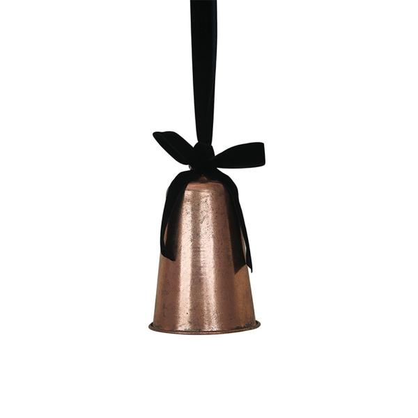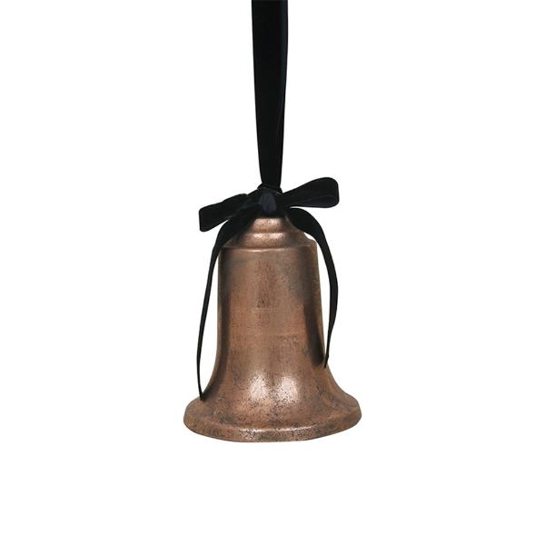 Antique Rose Metal Bell With Black Velvet Ribbon - 12cm x 17cm