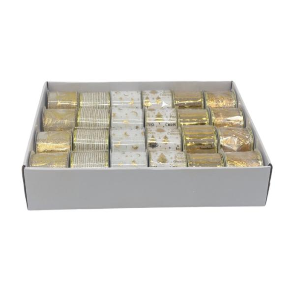 XMAS GOLD RIBBON 6.3CMX3M 6 ASST
