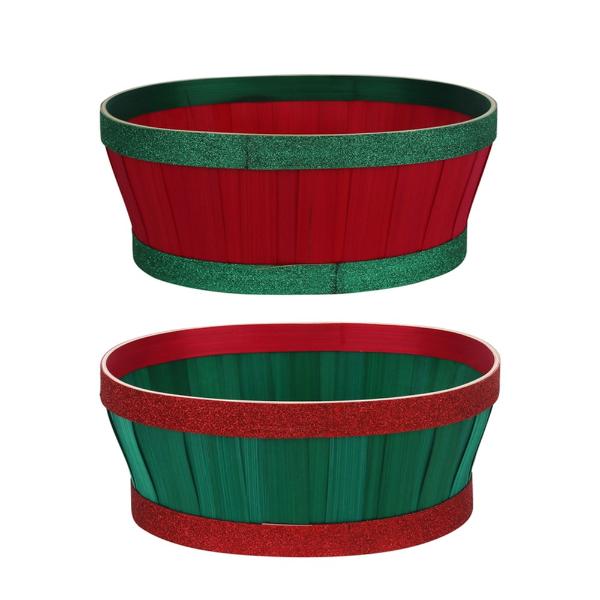 21 in stockRed & Green Rectangular Basket - 38cm x 24cm x 8.5cm