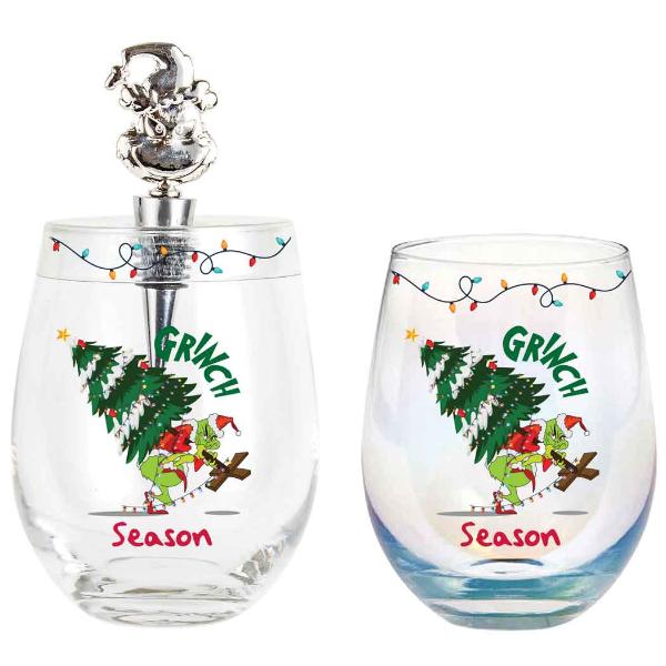 Only 3 left!Grinch Season Stemless Glass With Stopper
