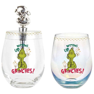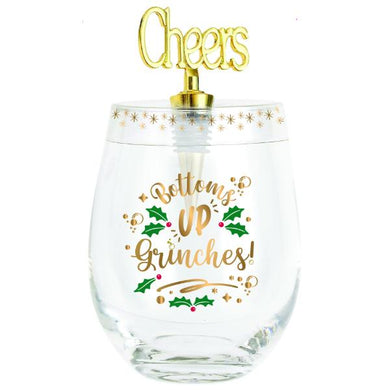 Only 3 left!Bottoms Up Grinches Stemless With Cheers Stopper - 600ml