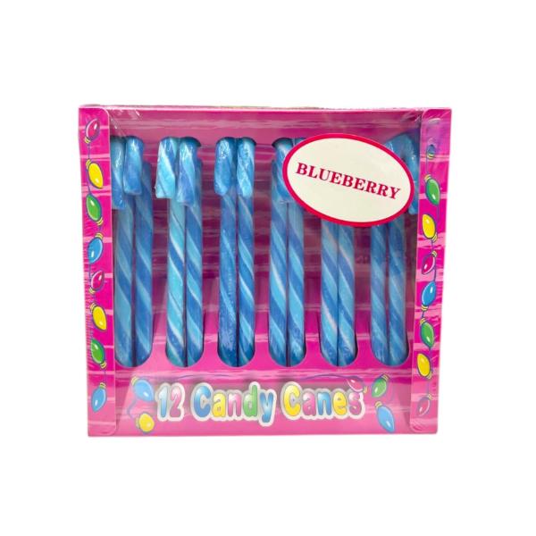 12 Pack Blue & White Striped Candy Cane Bubblegum - 12g