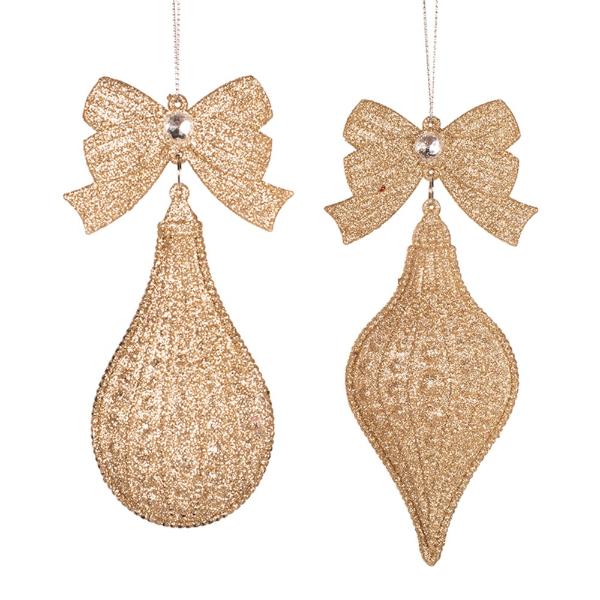 Only 4 left!Acrylic Finial Tree Ornaments With Champagne Finish Glitter - 17cm