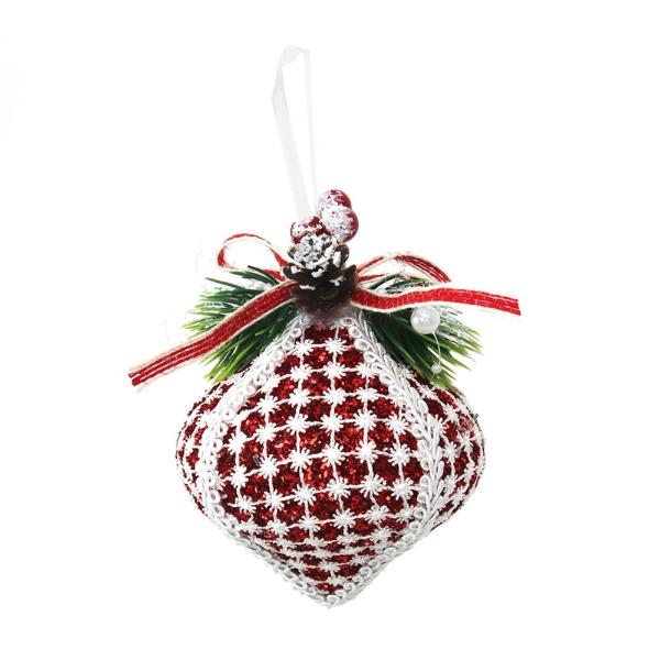 Only 3 left!Red & White Lace Ball Ornament - 11cm x 12cm