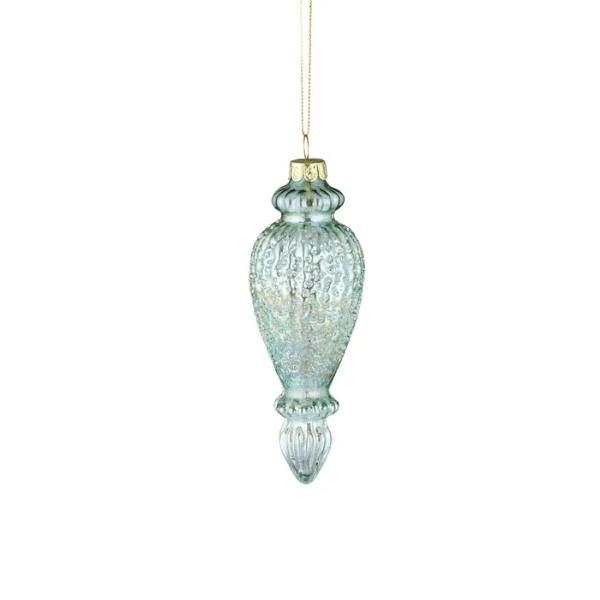 Only 1 left!Clear & Green Mintie Glass Ornament - 5cm x 14cm