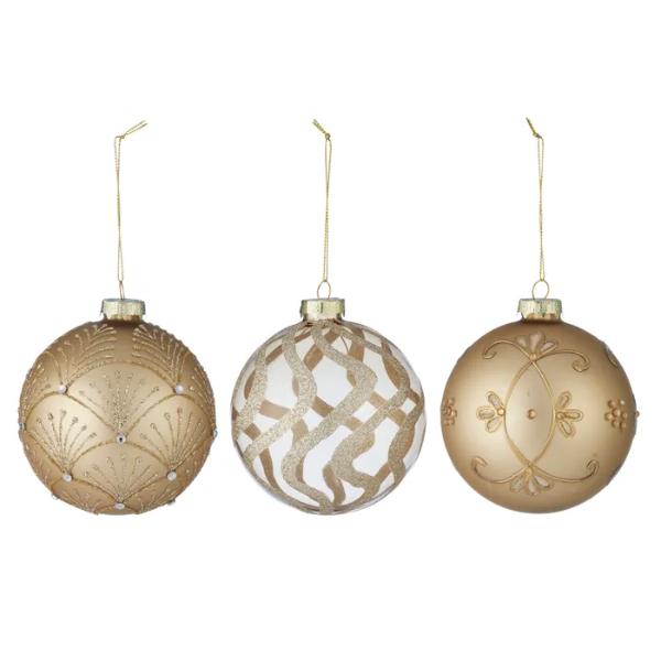 6 in stock10cm Glass Bauble Embellished Mat Gld 3a