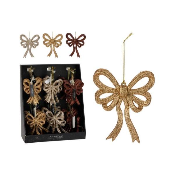 Only 3 left!Glitter Hanging Bow Decoration - 13cm
