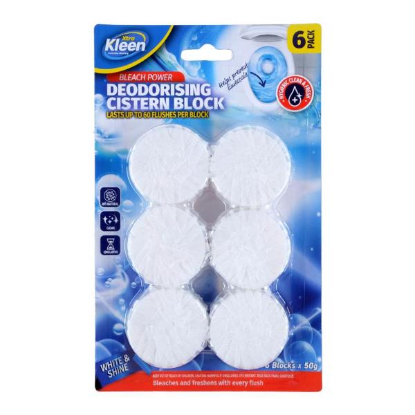 6 Pack White Bleach Powder Toilet Deodorising Cistem Blocks - 50g