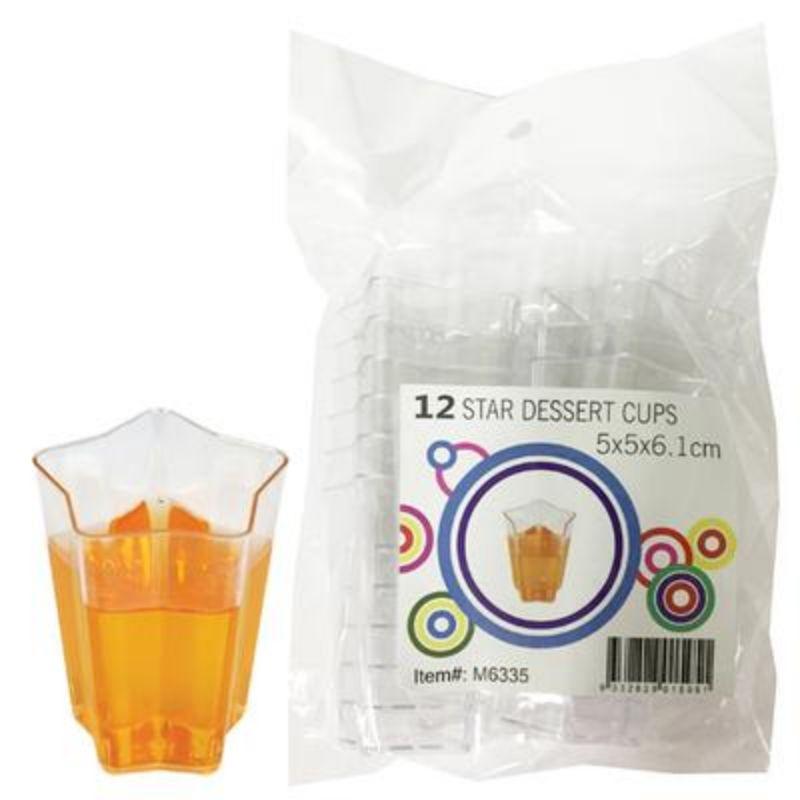12 Pack Clear Plastic Star Dessert Cups - 5cm x 5cm x 6cm