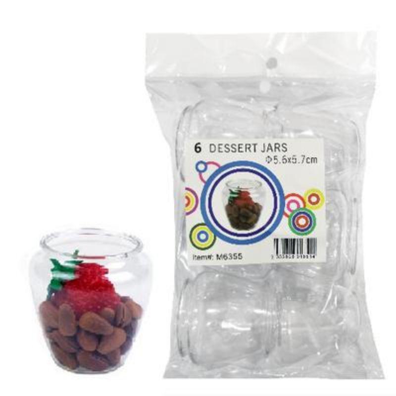 6 Pack Clear Plastic Dessert Jars - 5.6cm x 5.7cm