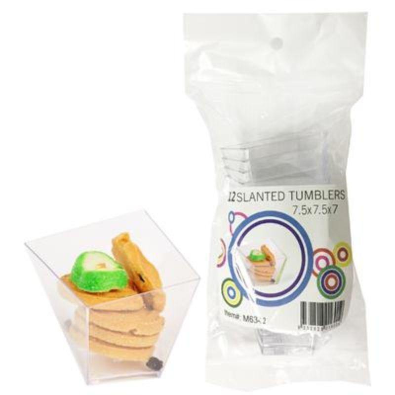 22 in stock12 Pack Clear Plastic Slanted Tumblers - 7.5cm x 7.5cm x 7cm