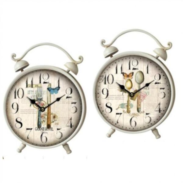 White Classical Metal Table Clock - 21cm x 15cm x 21cm