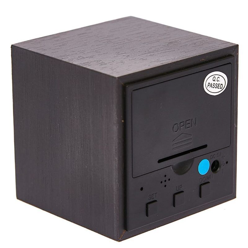 Black LED Wooden Cube Table Clock - 6cm x 6cm x 6cm