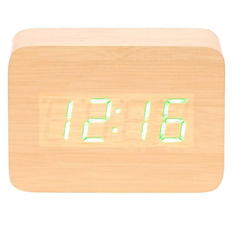 Natural LED Cuboids Table Clock With Temperature Display - 15cm x 3.9cm x 6.8cm