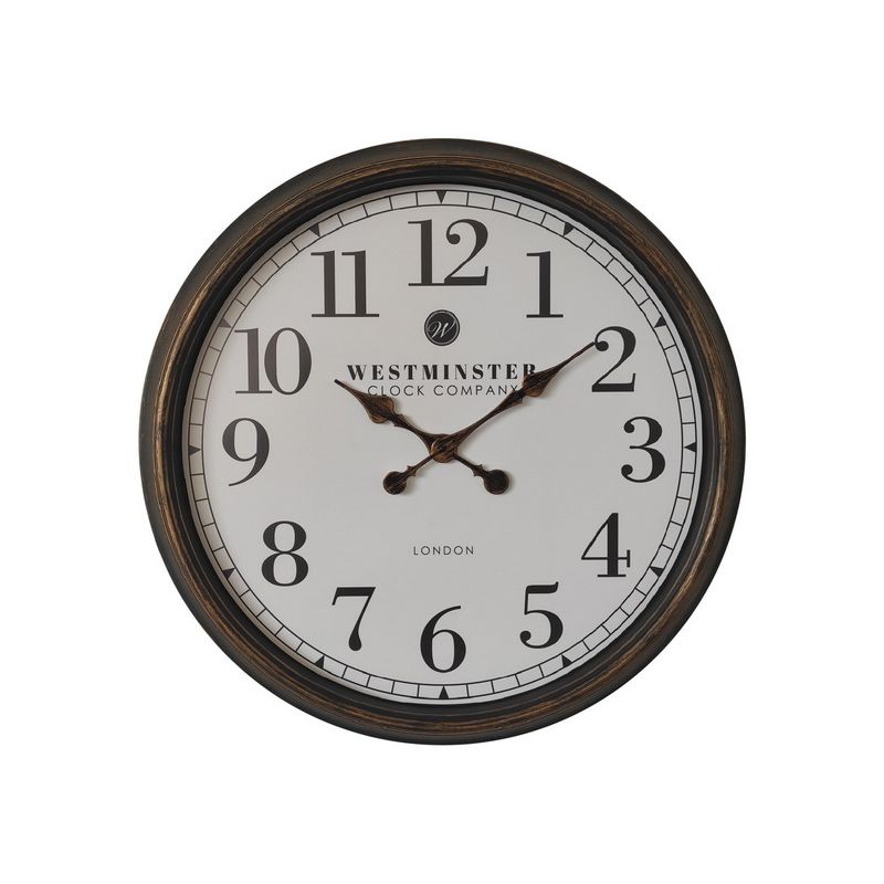 London Style Round Wall Clock with Numbers in Antique Brown - 76cm