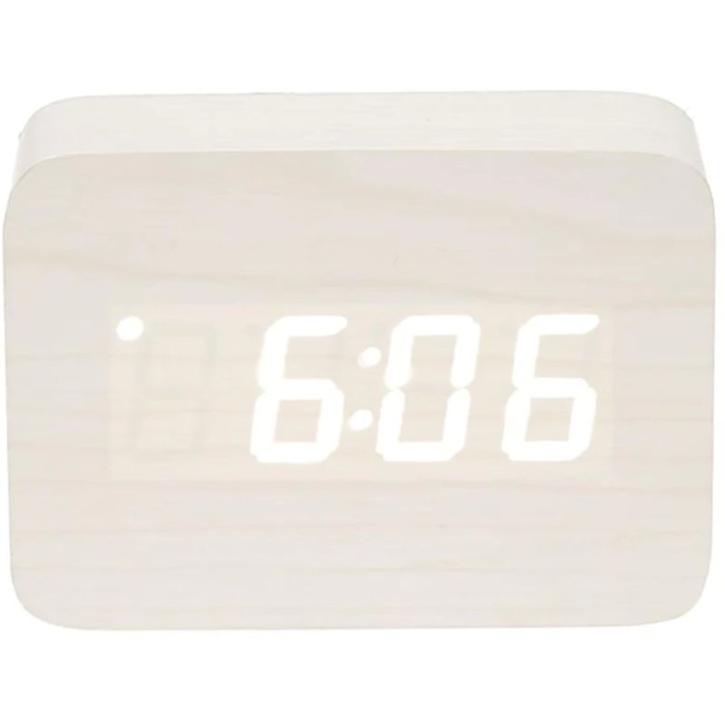 White Wooden Cuboids LED Table Clock - 10cm x 7cm x 4.3cm