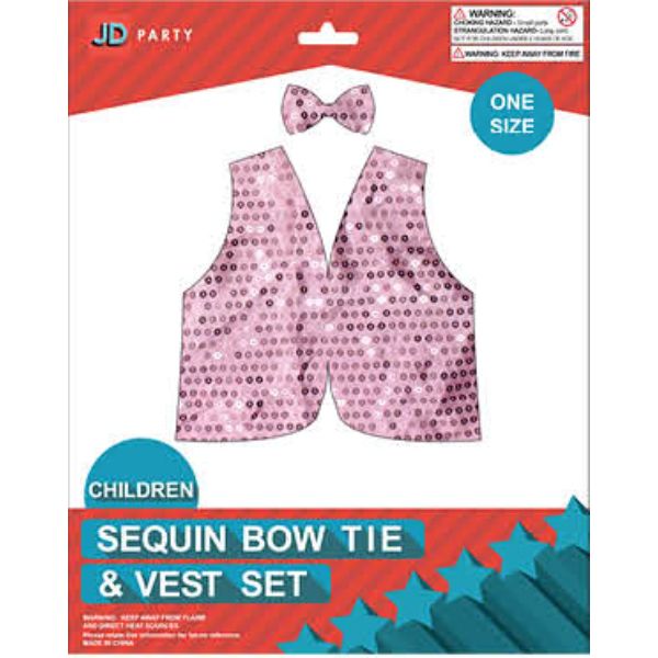 6 in stockLight Pink Kids Sequin Bow Tie & Vest Set