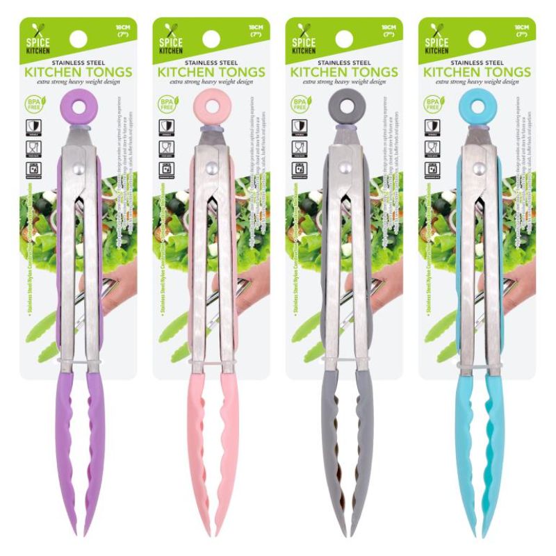 Nylon Tipped Premium Stainless Steel Kitchen Tong - 18cm