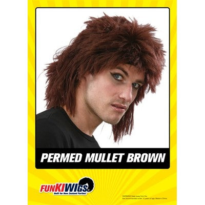 Only 5 left!Mens Brown Permed Mullet Wig