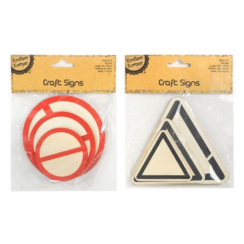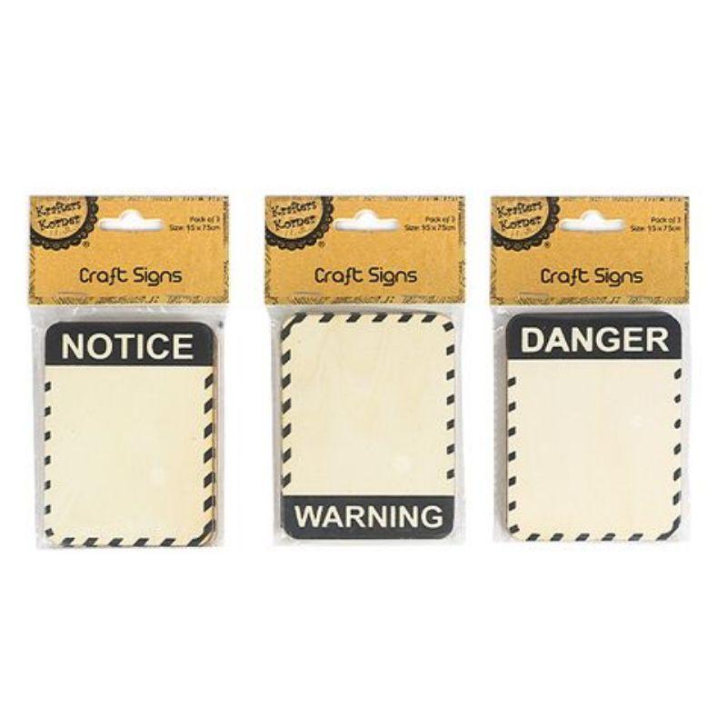 Only 1 left!3 Pack Wooden Craft Caution Signs - 10cm