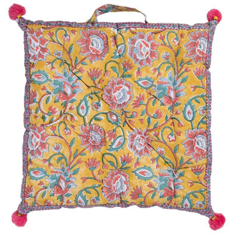 Only 1 left!Traditional Hand Processed Block Printed Sunshine Seat Pad - 45cm x 45cm x 5cm