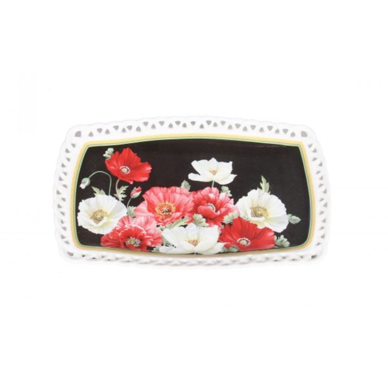 Only 1 left!New Poppies on Black Plate - 30.5cm x 13.5cm