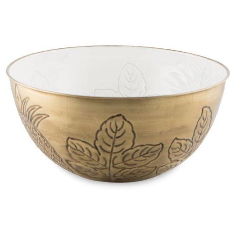 Only 2 left!Fresh White Aluminium & Enamel Gold Round Bowl - 33cm x 33cm x 11cm