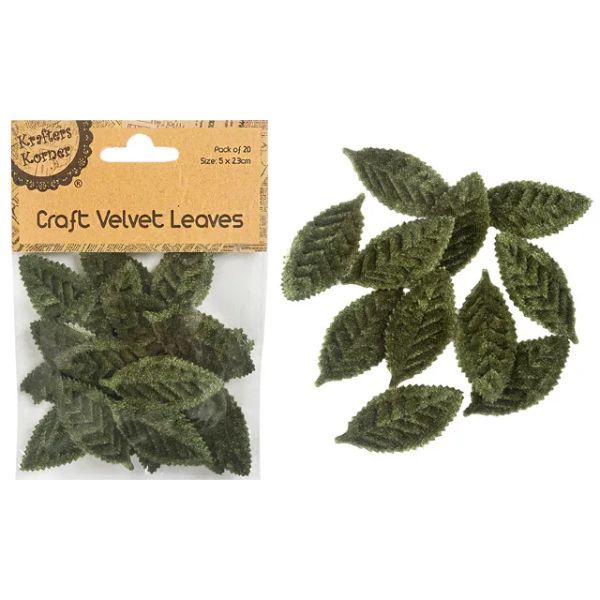 20 Pack Craft Dark Green Velvet Leaves - 5cm x 2.3cm