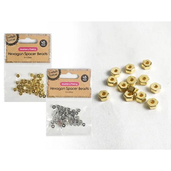 22 in stock45 Pack Metal Look Hexagon Spacer Beads - 0.6cm x 0.25cm