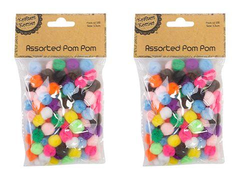100 Pack Assorted Colour Pom Poms - 1.5cm