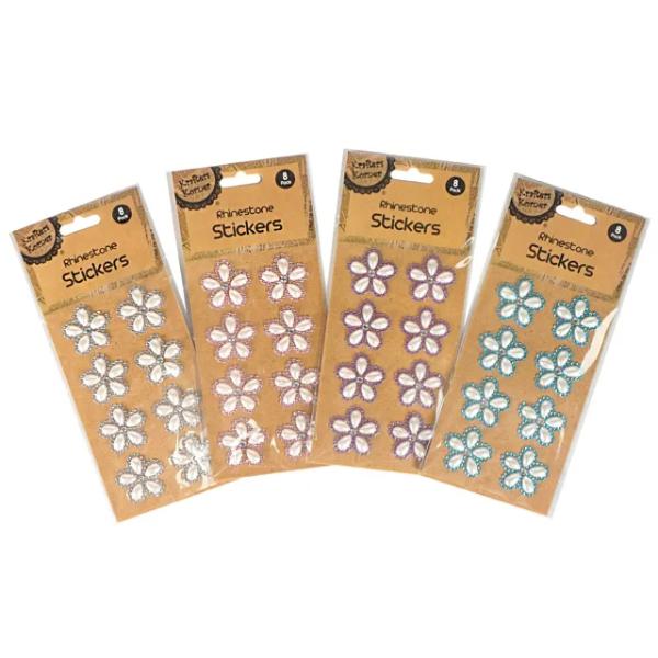 7 in stock8 Pack Flower Rhinestone Stickers - 12.5cm x 7cm