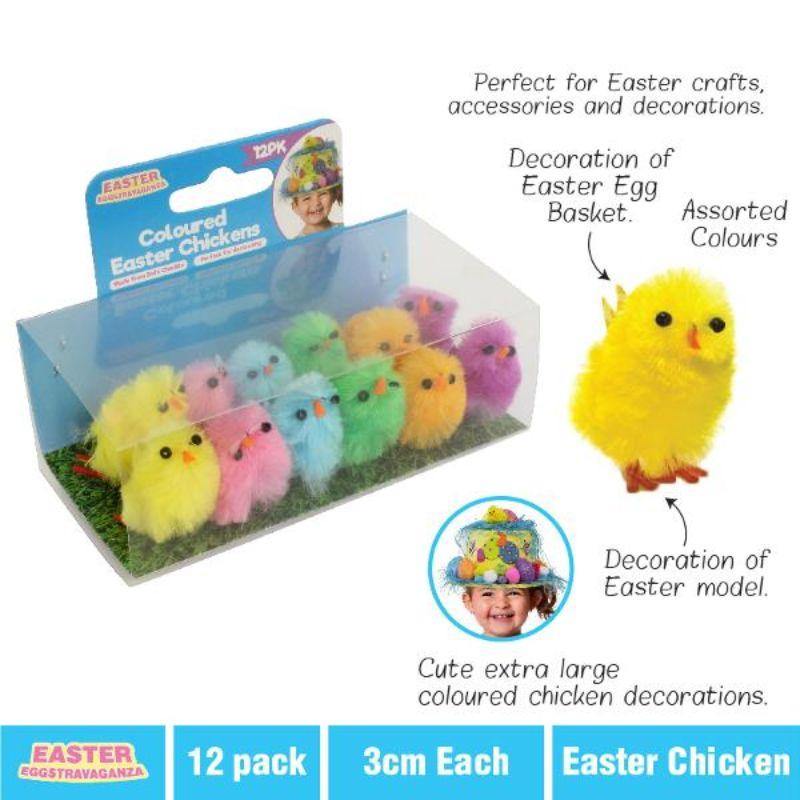 • 12 Pack Small Coloured Easter Chicken - 3cm
