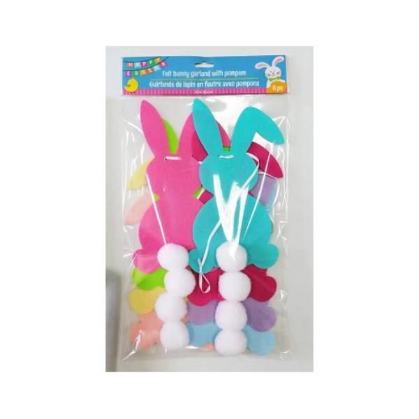 EASTER POMPOM BUNNY W/EAR PICKS 4PK 14.5CM 3ASST