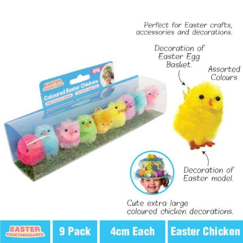 • 9 Pack Medium Coloured Easter Chicken - 4cm