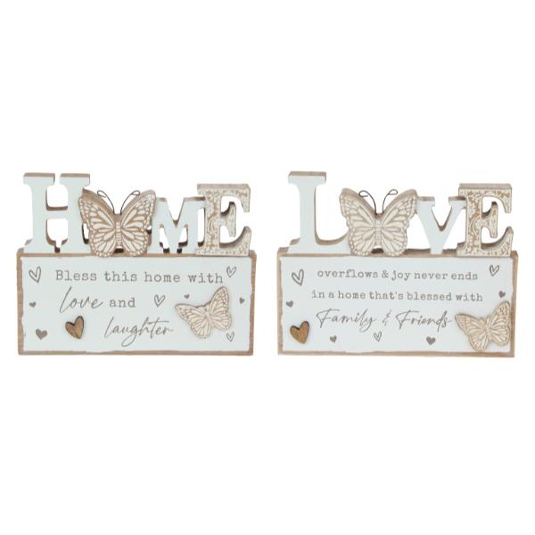 Only 2 left!Home Or Love Butterly Plaque - 30cm