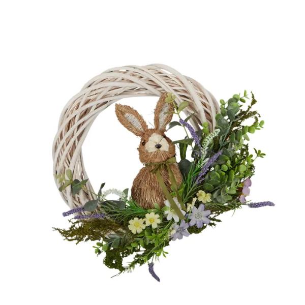 Only 1 left!White & Green Bunny Wreath Wicker - 37cm
