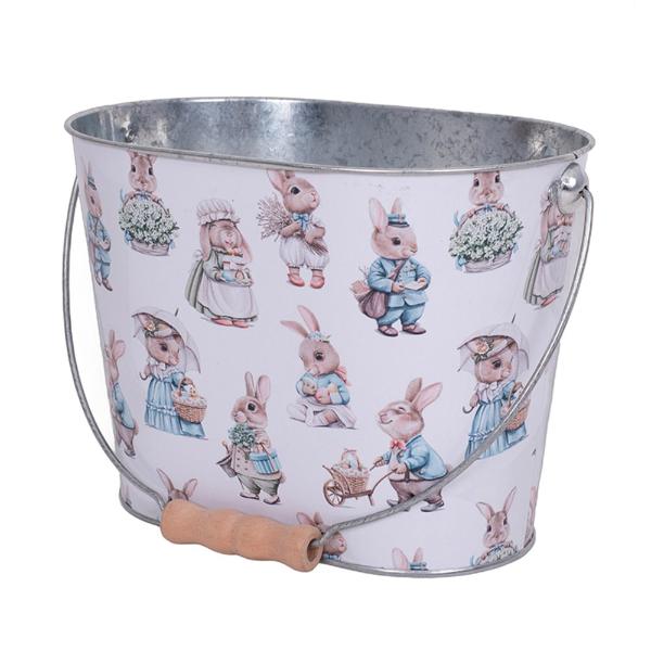 12 in stockOval Metal Old World Easter Bucket - 20cm x 13cm x 14.5cm